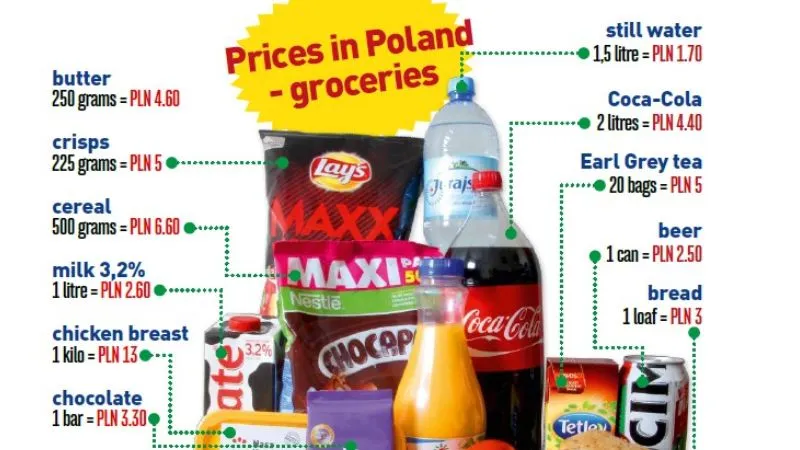 | 牛乳 1L | 約3.5PLN | 約130円 |